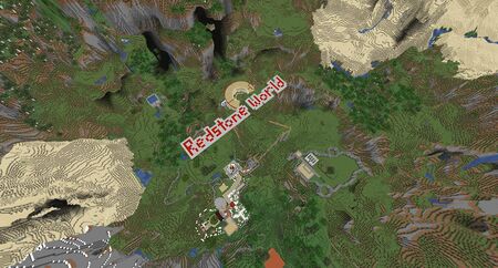 Redstone World was a base that doubled as an amusement park. Inspired by Canada's Wonderland the park aimed to provide entertainment and a meeting place for players on the server. The very first ride was the mine cart track through the mountain, while the chicken farm served as the first vendor. Later, construction began on a circular hotel, making use of the new (at the time) dyed clay blocks to add a splash of colour to the area.