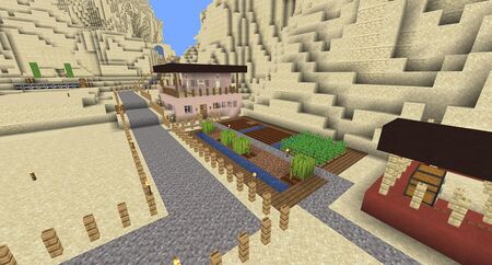 Back when terracotta was still called hardened clay, and it first came to Minecraft, it was one of the few ways to get any colour into a build, while having a relatively flat texture. The update that brought this to Minecraft inspired the creation of this small modernist cottage in the desert. Matt's base on the Shaynevasion server featured a path leading to a hotel, and an area for other players to build small structures and contribute to the landscape.